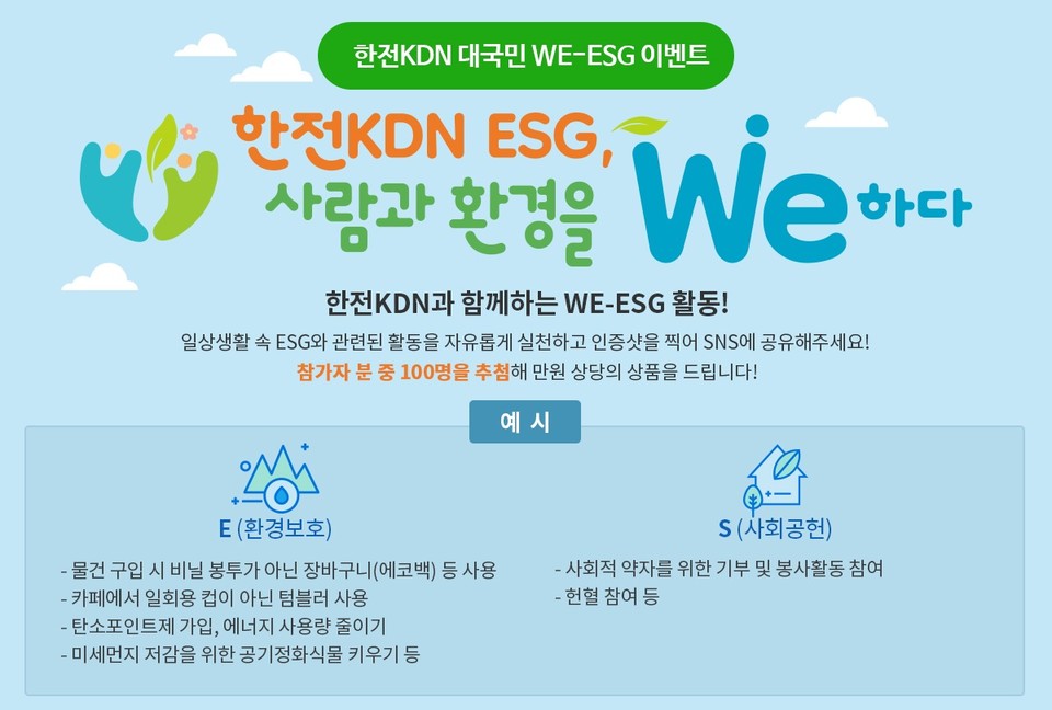 뱹 WE-ESG ̺Ʈ KDN Ȩ ȴ. ̺Ʈ ʼ ؽ± KDN ESGΰ ̹ ϻ ESGõ(ȯ溸ȣȸ ) SNS Խϰ ش ũ KDN Ȩ ̺Ʈ Խǿ ۼϸ Ϸȴ. ̺Ʈ ÷ ǰ ̴.